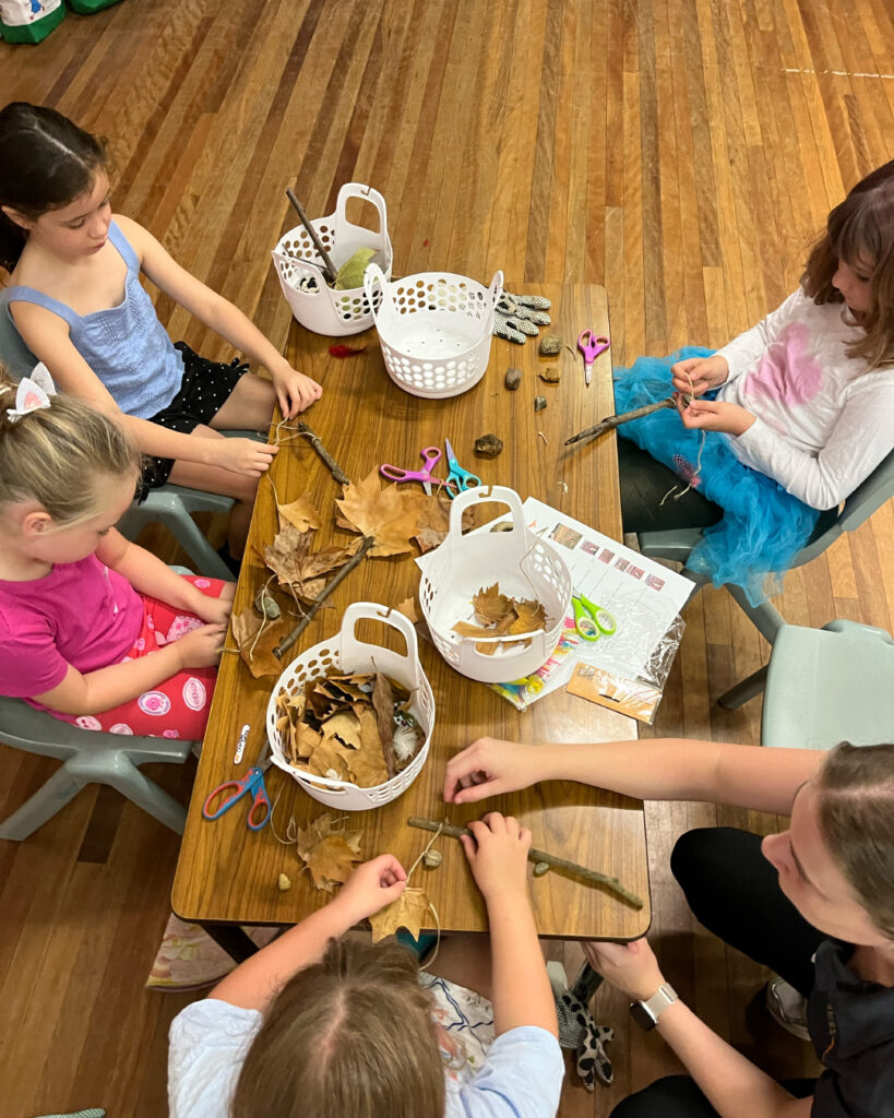 It was heartwarming to see our friends enthusiastically sharing ideas, materials, and creations. They also enjoyed sharing in team Uno games, racing on scooter boards, and navigating our dynamic air mattresses. It was a wonderful week filled with new friendships and inspiration from nature!