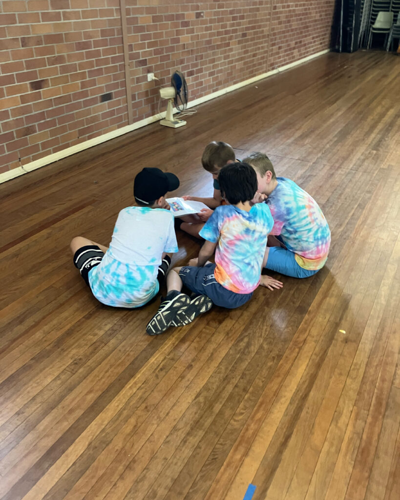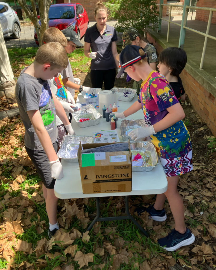 Our explorers collected inspiration from the environment to create their very own tie-dye shirts. The group experimented with folding techniques, rubber bands and vibrant colour combinations to design unique patterns. This hands-on craft supported fine motor development, bilateral coordination, visual-motor planning and creative expression with everyone proudly taking home a personalised shirt at the end of the session.